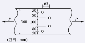그림과 같은 두께 13mm의 플레이트에 4개의 볼트구멍이 배치되어있을 때 부재의 순단면적은? (단, 구멍의 지름은 24mm이다.)