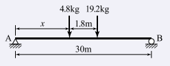 다음의 단순보에서 A점의 반력이 B점의 반력의 3배가 되기 위한 거리
