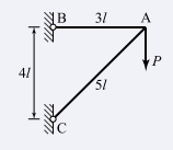 그림과 같은 트러스에서 A점에 연직하중 P가 작용할 때 A점의 연직처짐은? (단, 부재의 축 강도는 모두 EA이 고, 부재의 길이는 AB=3l, AC=5l, 지점 B와 C의 거 리는 4l이다.)