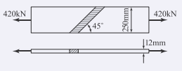 그림과 같은 용접 이음에서 이음부의 응력은 얼마인가?