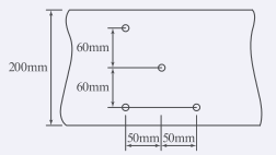 다음 그림과 같이 직경 25mm의 구멍이 있는 판(plate)에서 인장응력 검토를 위한 순폭은 약 얼마인가?