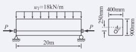 아래 그림과 같은 PSC보에 활하중(w_l ) 18kN/m이 작용하고 있을 때 보의 중앙단면 상연에서 콘크리트 응력은? (단, 프리스트레스 힘(P)은 3,375kN이고, 콘크리트의 단위중량은 25N/m³을 적용하여 자중을 산정하며, 하중계수와 하중조합은 고려하지 않는다.)