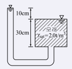 그림과 같은 조건에서 분사현상에 대한 안전율을 구하면? (단, 모래의 \gamma _{sat}=2.0tf/m³이다.)