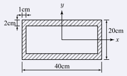 그림과 같이 X, Y축에 대칭인 빗금 친 단면에 비틀림우력 50kN·m가 작용할 때 최대전단응력은?