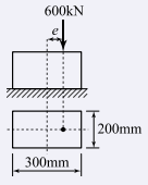 그림과 같은 직사각형 단면의 단주에서 편심하중이 작용할 경우 발생하는 최대 압축응력은? (단, 편심거리(