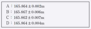 어느 두 지점 사이의 거리를 A, B, C, D 4명의 사람이 각각 10회 관측한 결과가 다음과 같다면 가장 신뢰성이 낮은 관측자는?
