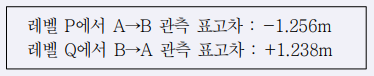 교호수준측량의 결과가 아래와 같고, A점의 표고가 10m일 때 B점의 표고는?