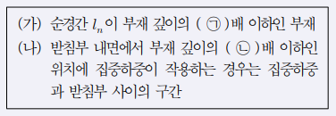 깊은보는 한쪽 면이 하중을 받고 반대쪽 면이 지지되어 하중과 받침부 사이에 압축대가 형성되는 구조요소로서 아래의 (가) 또는 (나)에 해당하는 부재이다. 아래의 ( )안에 들어갈 ㉠, ㉡으로 옳은 것은?
