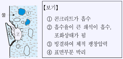 다음은 콘크리트 구조물의 동해에 따른 피해 현상을 나타낸 것이다. 어느 현상을 설명한 것인가?
