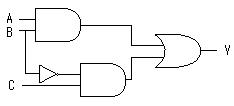 다음 그림의 논리회로에서 입력 \rm A, B, C에 대한 출력 \rm Y의 값은?