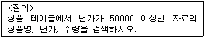 SELECT 상품 FROM 상품명, 단가, 수량 WHERE 단가 >= 50000;