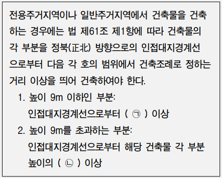 다음은 일조 등의 확보를 위한 건축물의 높이제한에 관한 기준내용이다. ( ) 안의 내용으로 옳은 것은?