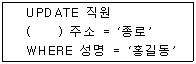 다음은 SQL의 갱신문이다 ( ) 안의 내용으로 적당한 것은?