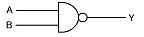 다음 게이트에서 입력 \rm A, B에 대한 출력 \rm Y의 논리식은?
