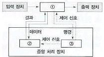 주기억장치, 제어장치, 연산장치 사이에서 정보가 이동되는 경로이다. 빈 부분에 알맞은 장치는?