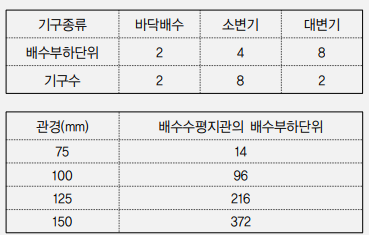 사무소 건물에서 다음과 같이 위생기구를 배치하였을 때 이들 위생기구 전체로부터 배수를 받아들이는 배수수평 지관의 관경으로 가장 알맞은 것은?