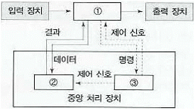 주기억장치, 제어장치, 연산장치 사이에서 정보가 이동되는 경로이다. 빈 부분에 알맞은 장치는?