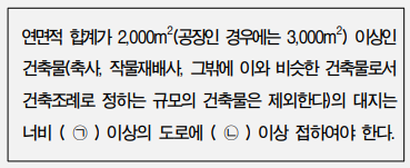 다음 중 대지와 도로의 관계에 관한 기준 내용 중 ( ) 안에 알맞은 것은?