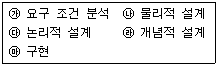 다음의 데이터베이스 설계 항목들을 순서대로 옳게 나열한 것은? (일부 컴퓨터에서 원문자가 보이지 않아서 괄호안에 다시 표기하여 둡니다.)