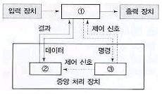 주기억장치, 제어장치, 연산장치 사이에서 정보가 이동 되는 경로이다. 빈 부분에 알맞은 장치는?