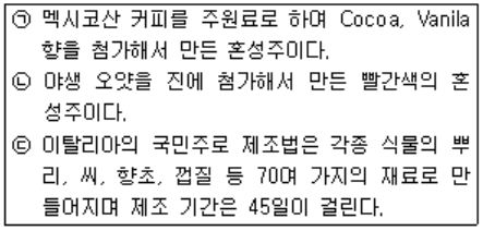 다음의 설명에 해당하는 혼성주를 옳게 연결한 것은?