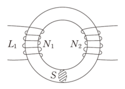 그림과 같이 단면적 S[m²]가 균일한 환상철심에 권수