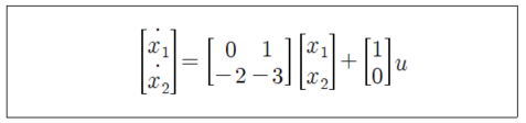 다음과 같은 상태방정식으로 표현되는 제어시스템의 특성방정식의 근(s_1,s_2)은?