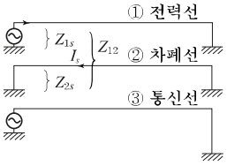 전력선과 통신선 사이에 그림과 같이 차폐선을 설치하며, 각 선사이의 상호임피던스를 각각 Z_{12},Z_{1s},Z_{2s}라 하고 차폐선 자기임피던스를 Z_s라 할 때 저감계수를 나타낸 식은?
