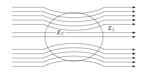 그림과 같은 유전속의 분포에서 \epsilon_1\epsilon_2의 관계는?