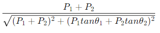 \frac{P_1+P_2}{\frac{P_1}{cos\theta_1}+\frac{P_2}{cos\theta_2}}