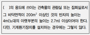 다음 거실의 반자높이와 관련된 기준 내용 중 ( ) 안에 해당되지 않는 건축물의 용도는?