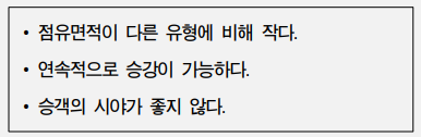 다음과 같은 특징을 갖는 에스컬레이터 배치 유형은?