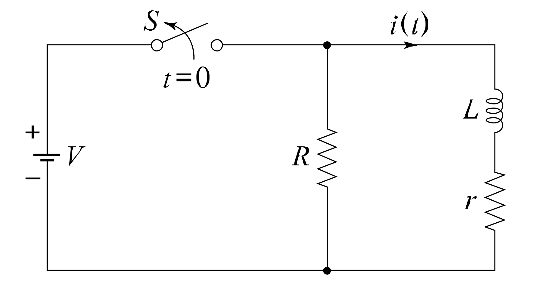 \frac{V}{R}e^{-\frac{L}{R+r}t}