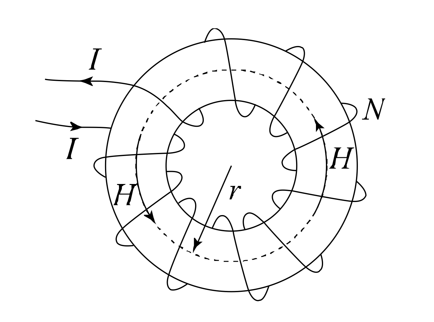 그림과 같은 환상 솔레노이드 내의 철심 중심에서의 자계의 세기