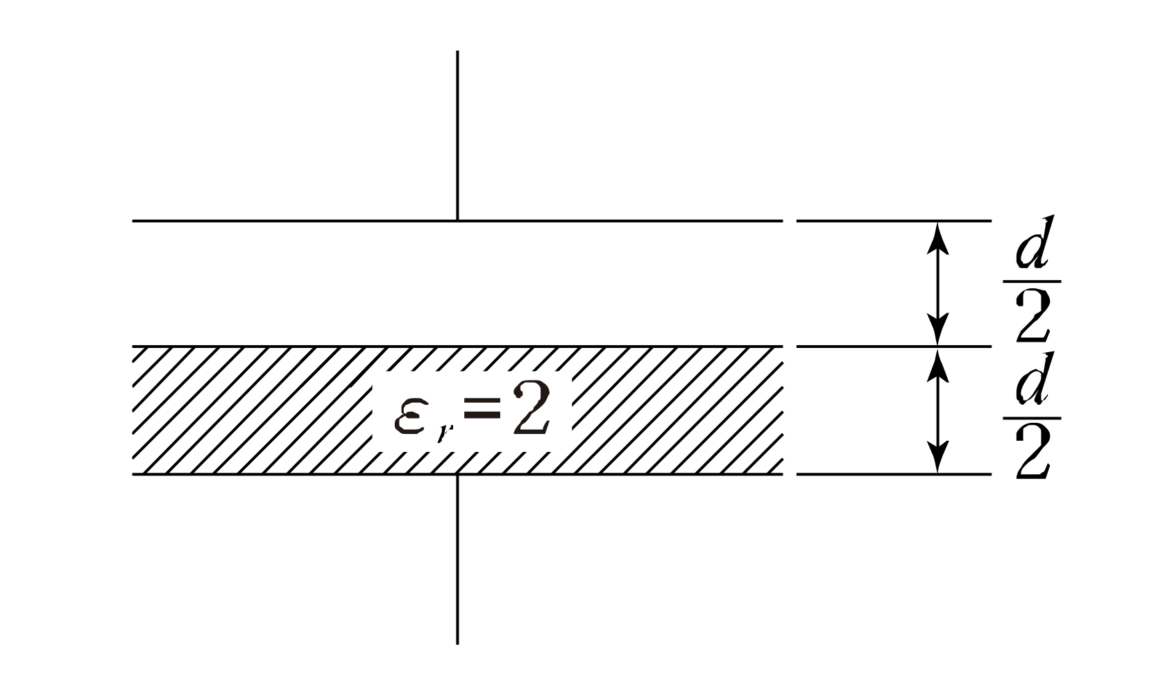정전용량이 1μF 이고 판의 간격이 d인 공기콘덴서가 있다. 두께 \frac{1}{2}d, 비유전율 ε_r=2 유전체를 그 콘덴서의 한 전극면에 접촉하여 넣었을 때 전체의 정전용량(μF)은?