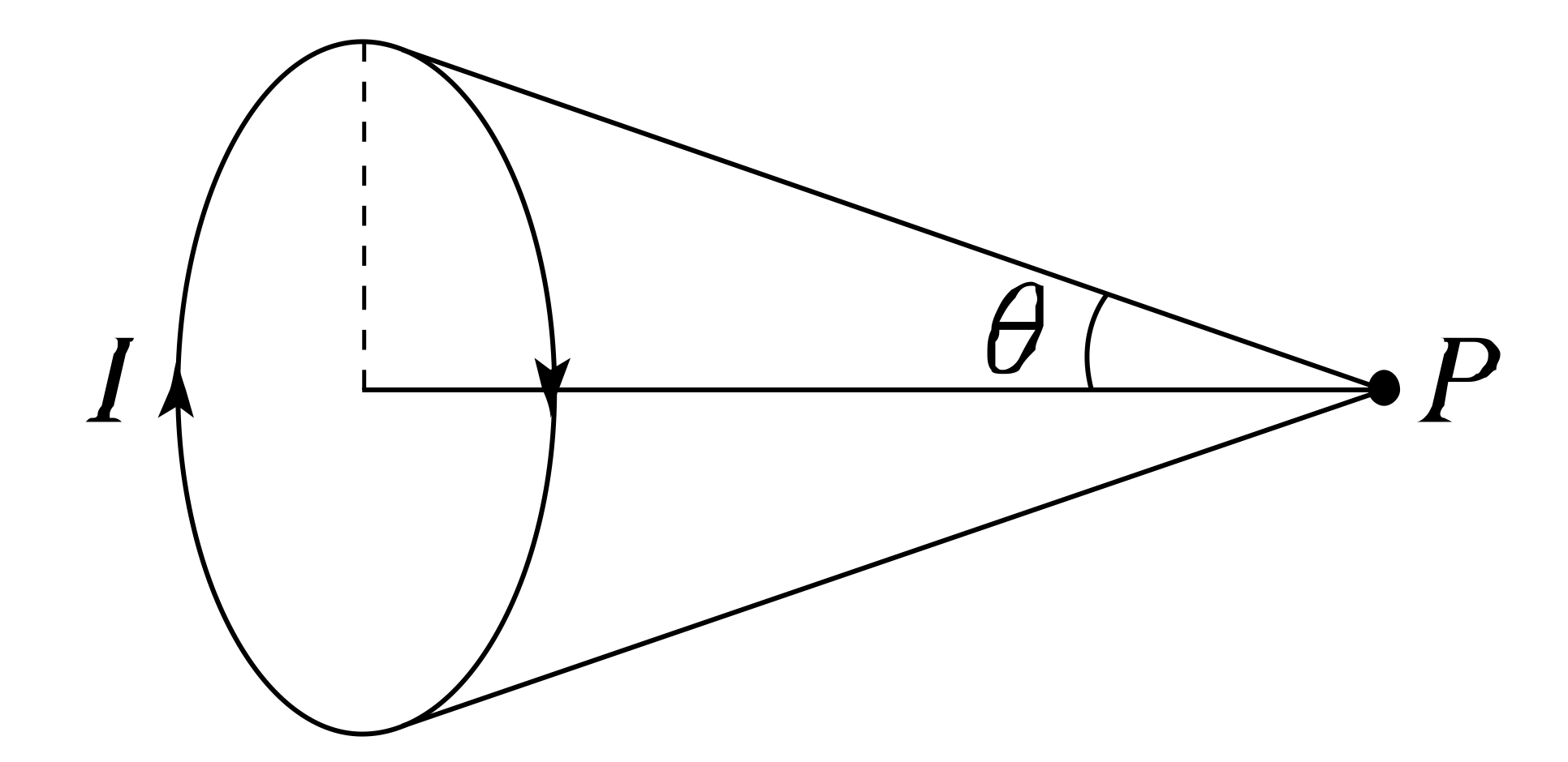 원형 선전류 I(A)의 중심축상 점 P의 자위(A)를 나타내는 식은? (단, θ는 점 P에서 원형전류를 바라보는 평면각이다.)