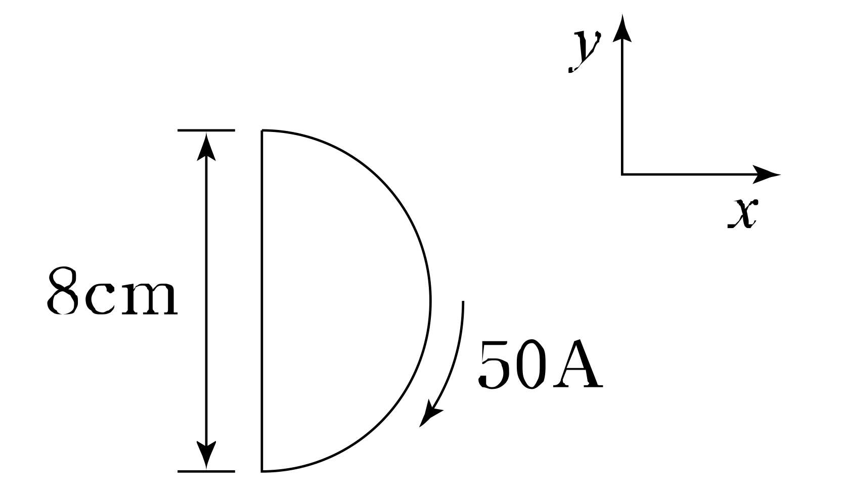 그림과 같이 전류가 흐르는 반원형 도선이 평면
