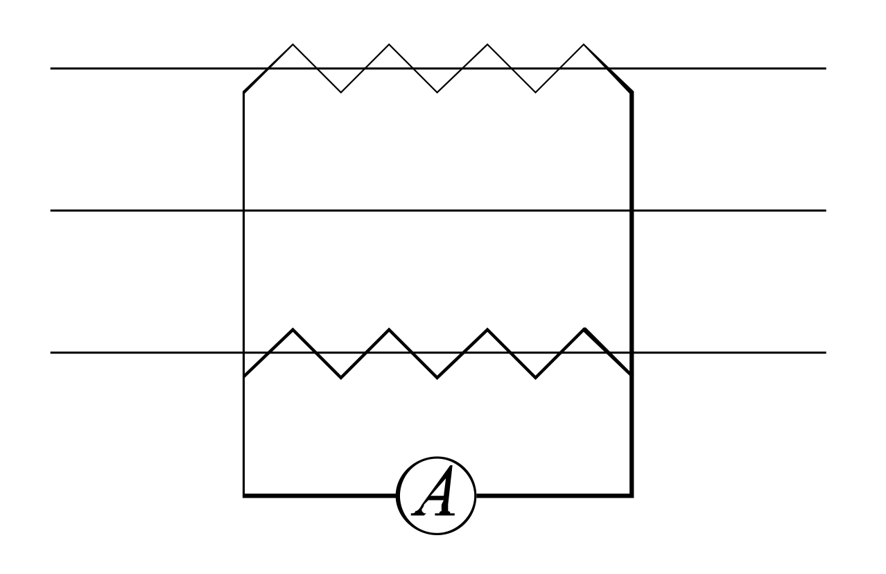 평형 3상 회로의 전류를 측정하기 위해서 변류비 200 : 5의 변류기를 그림과 같이 접속하였더니 전류계의 지시가 1.5A이었다. 1차 전류는 몇 A인가?