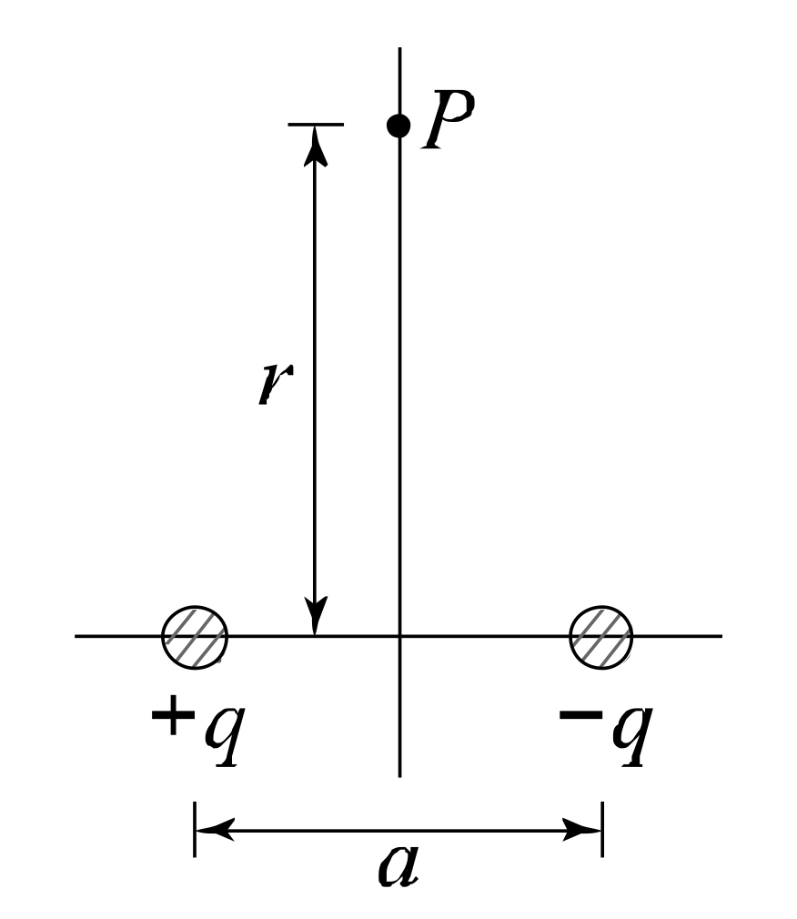 만큼 떨어져 있을 때 이 쌍극자가 P점에 만드는 전계