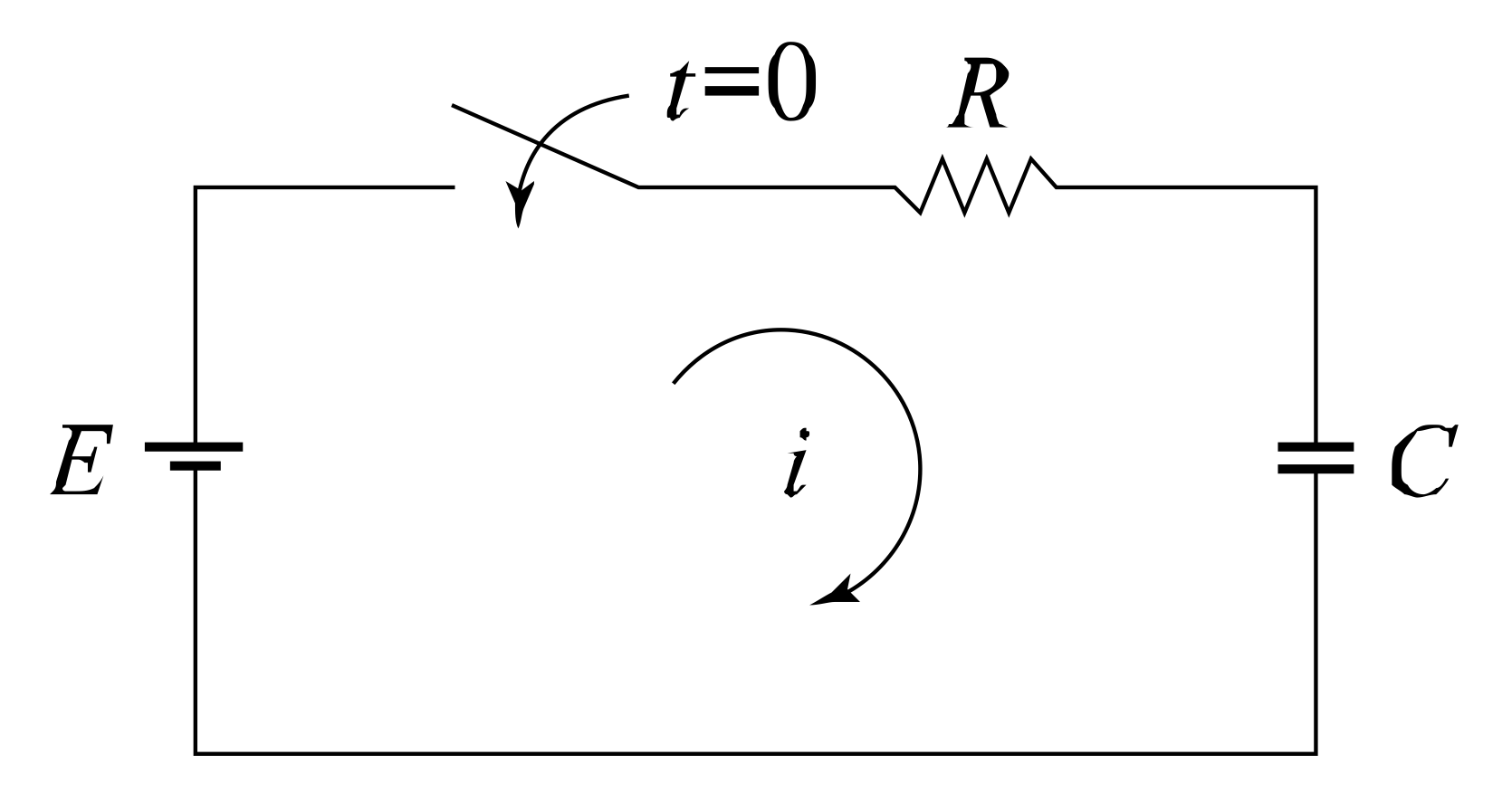 그림과 같은 RC 회로에서 스위치를 넣은 순간 전류는? (단, 초기조건은 0이다.)