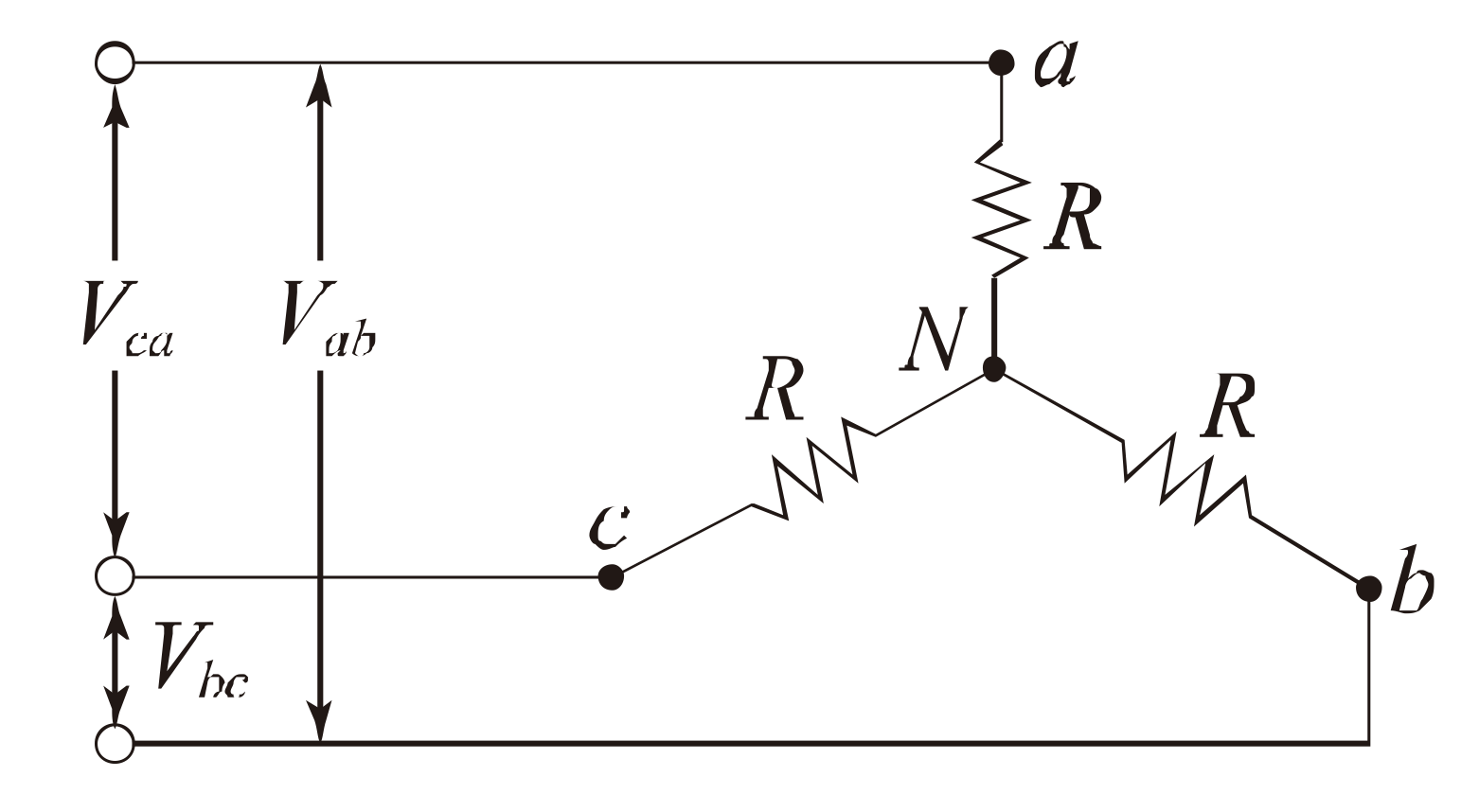 의 저항을 Y결선으로 하여 단자의 a, b 및 c에 비대칭 3상 전압을 가할 때, a 단자의 중성점 N에 대한 전압은 약 몇