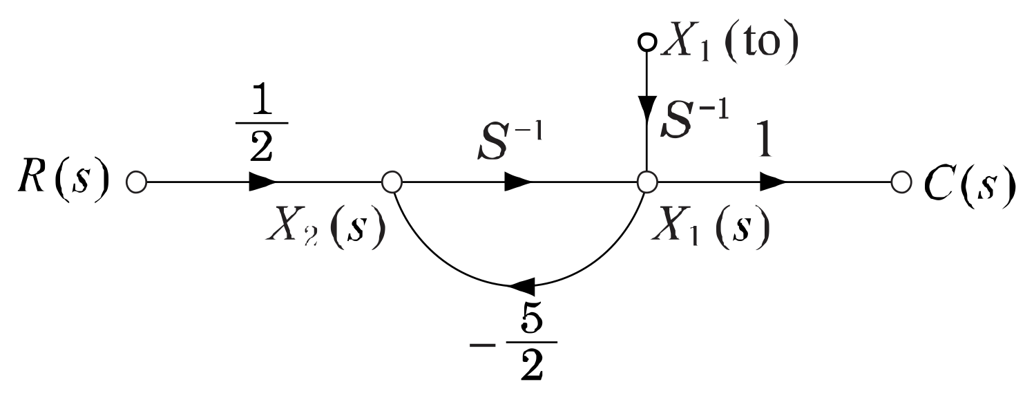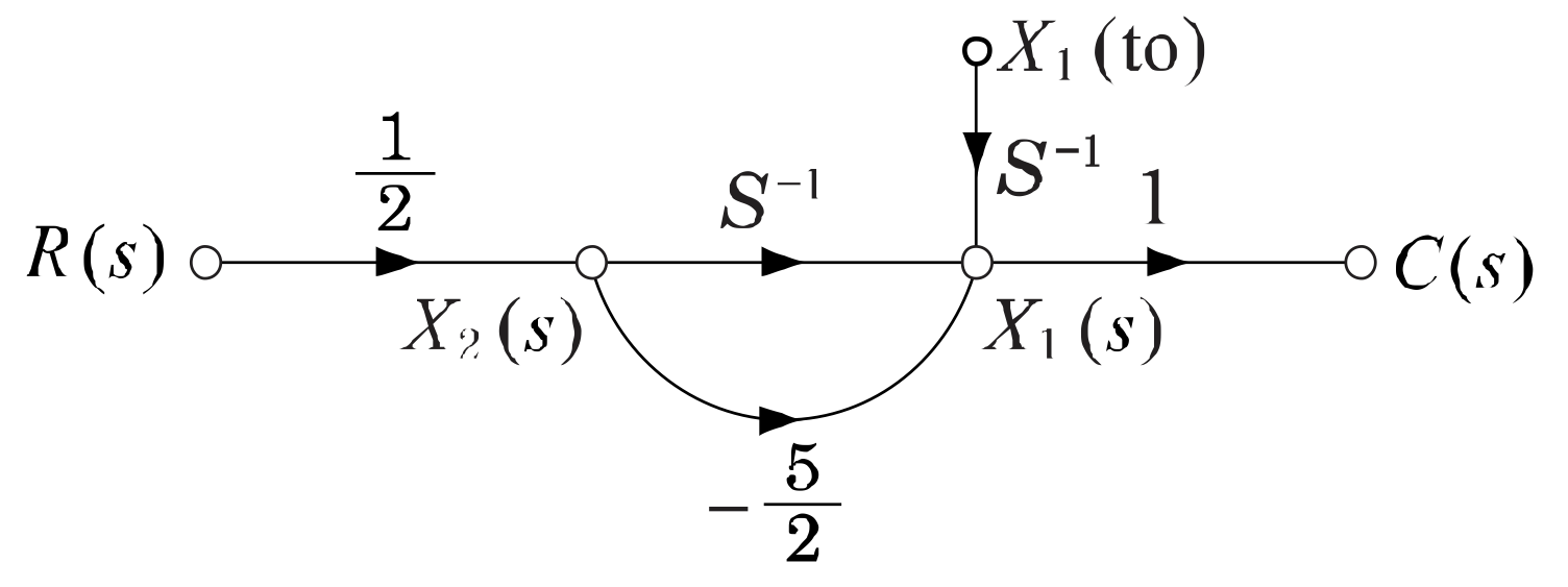 다음의 미분 방정식을 신호 흐름 선도에 옳게 나타낸 것은?