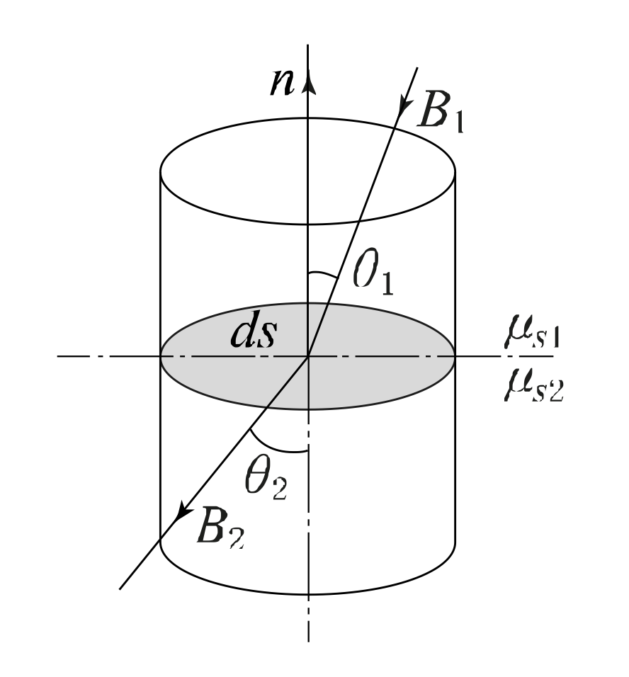 를 굴절각이라 한다. 경계면에 자하가 없는 경우 미소 폐곡면을 취하여 이곳에 출입하는 자속수를 구하면?