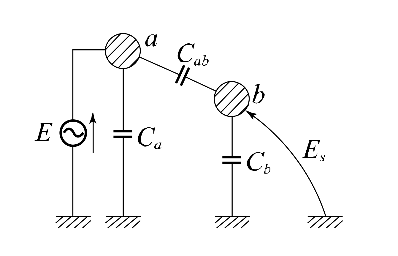 전력선 a의 충전전압을 E, 통신선 b의 대지 정전용량을 C_b, a-b 사이의 상호 정전용량을 C_{ab}라고 하면 통신선 b의 정전유도전압E_s 는?