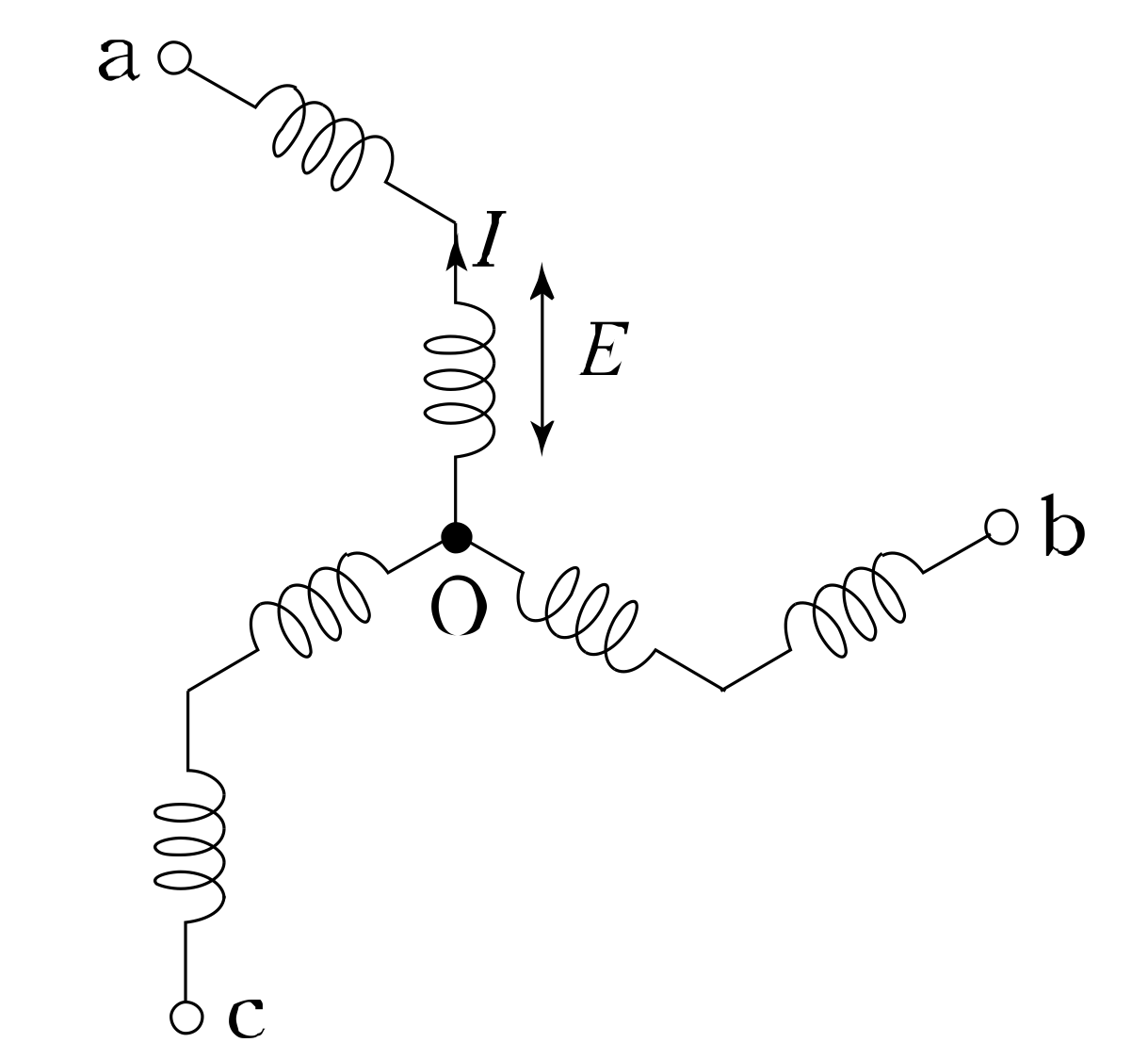 3상 동기 발전기에서 그림과 같이 1상의 권선을 서로 똑같은 2조로 나누어서 그 1조의 권선전압을 E[V], 각 권선의 전류를 I[A]라 하고 지그재그 Y형[zigzag star]으로 결선하는 경우 선간전압, 선전류 및 피상 전력은?