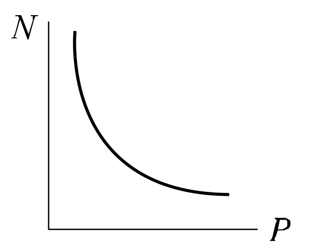 동기 발전기에서 동기속도와 극수와의 관계를 표시한 것은?(단, N : 동기속도, P : 극수이다.)