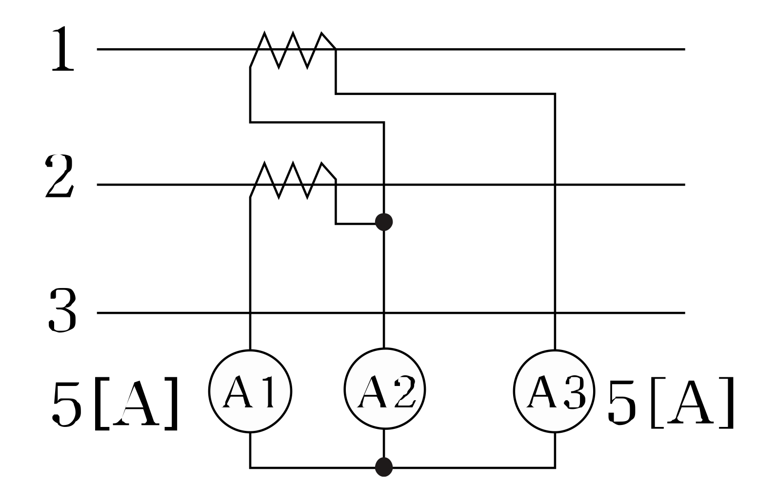 평형 3상 회로에서 그림과 같이 변류기를 접속하고 전류계를 연결하였을 때,