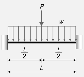 M=-\frac{w L^2}{12}-\frac{P L}{8}