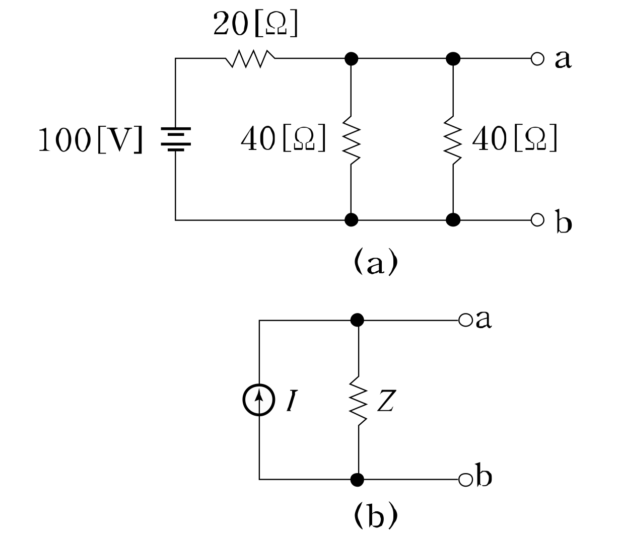 그림 (a)와 (b)의 회로가 등가 회로가 되기 위한 전류원