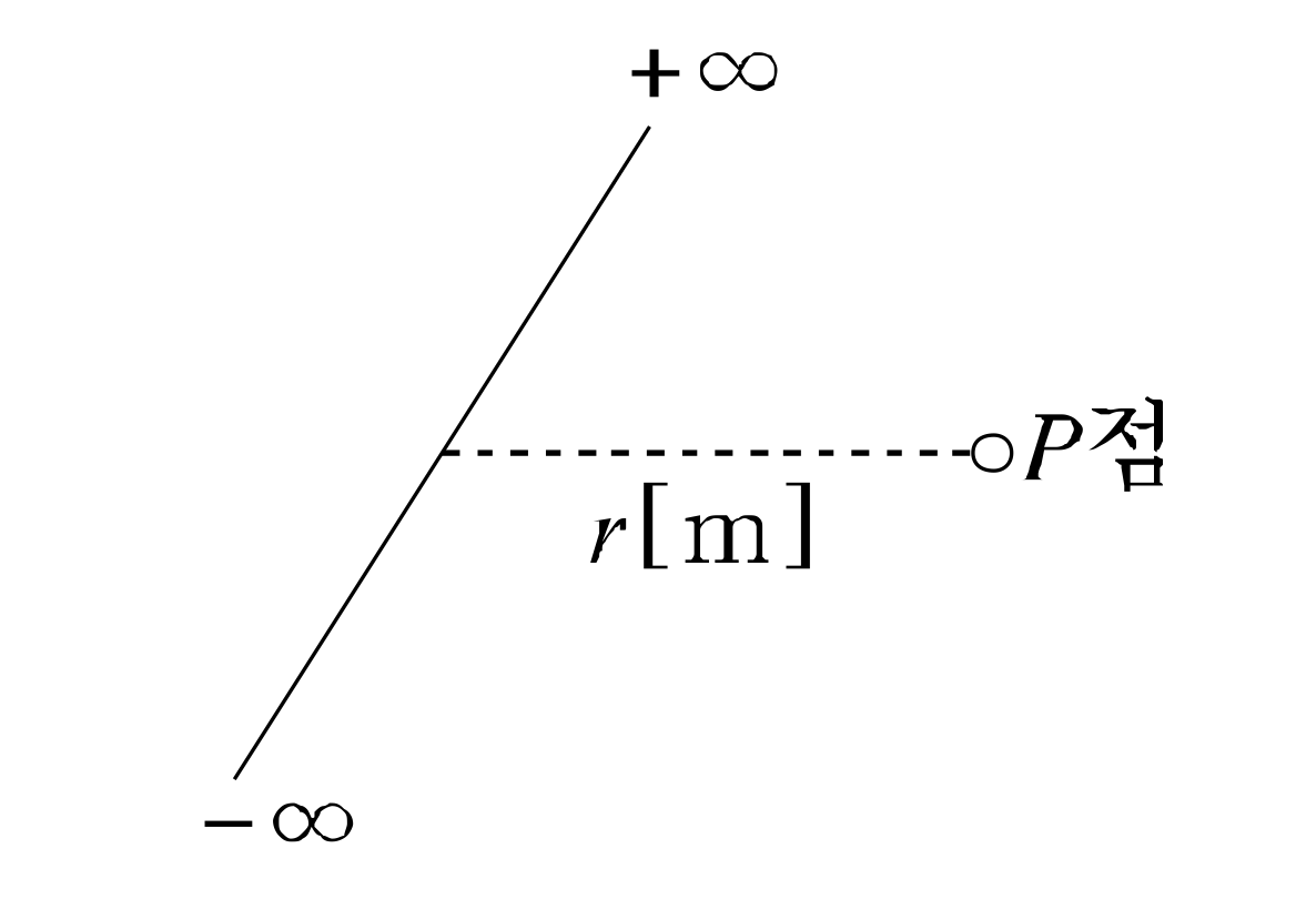 무한장 선로에 균일하게 전하가 분포된 경우 선로로부터